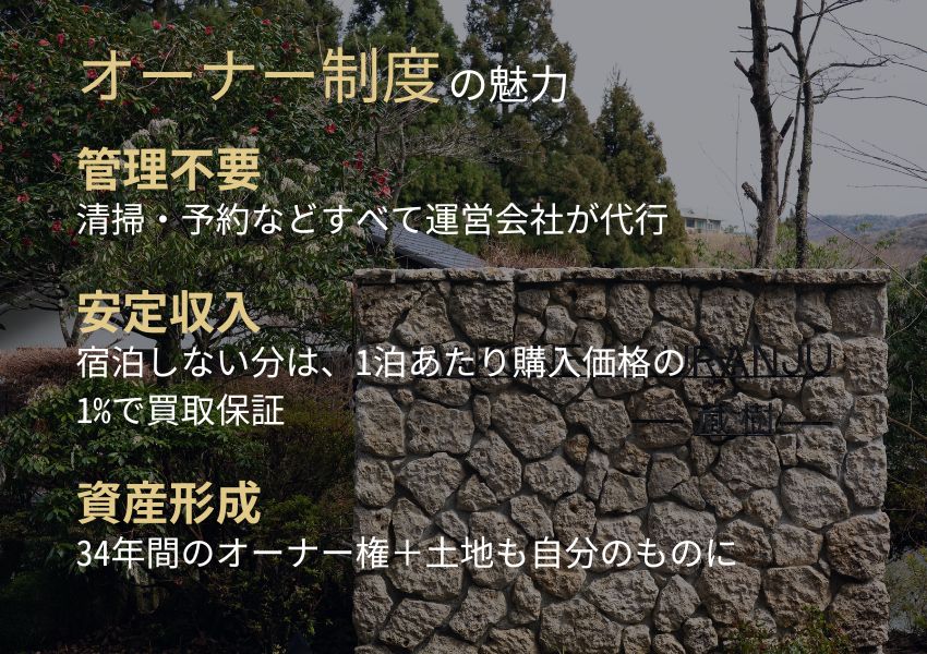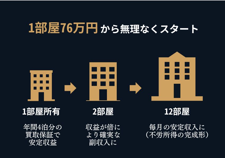 • 1部屋所有 → 年間4泊分の買取保証で安定収益