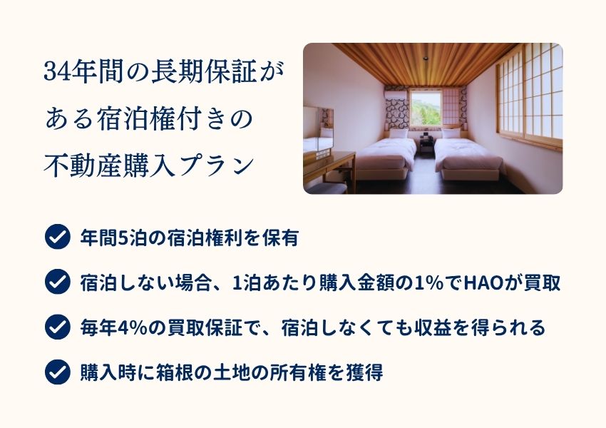 • さらに、箱根の土地の価値も手に入るため、大きな資産形成にもつながります。