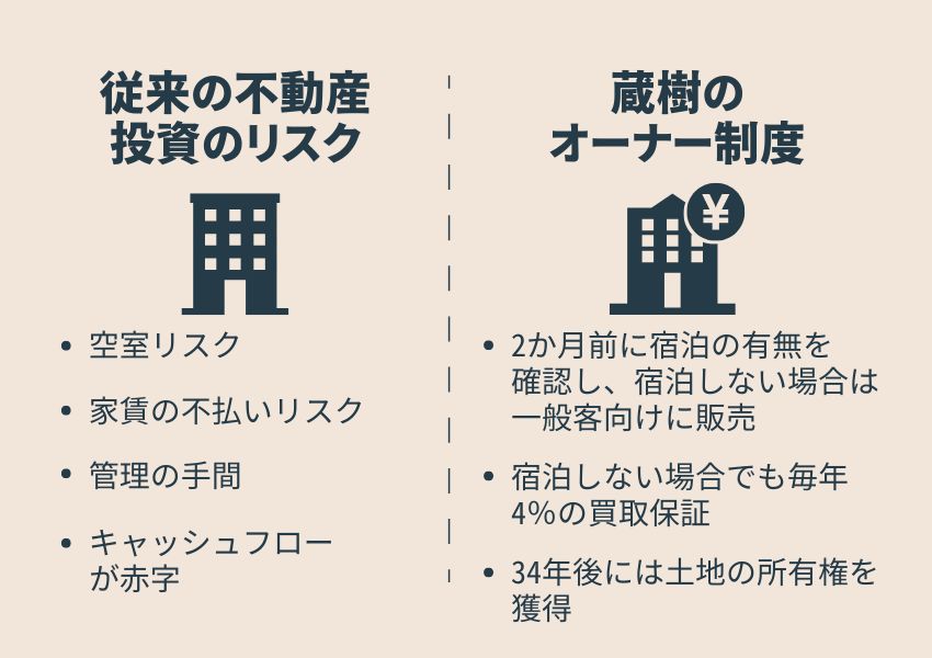 蔵樹のオーナー制度は、34年間の長期保証がある宿泊権付きの不動産購入プランです。​