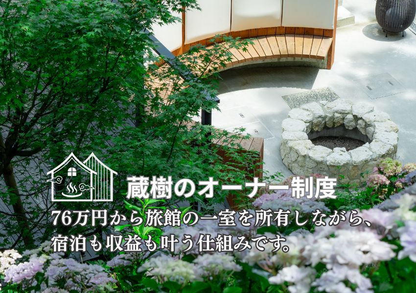 箱根の高級旅館の一室を、たった76万円から手に入れられる新しい資産のカタチ、【蔵樹のオーナー制度】をご紹介します。